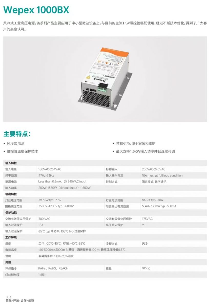 風(fēng)冷微波電源主要特點: